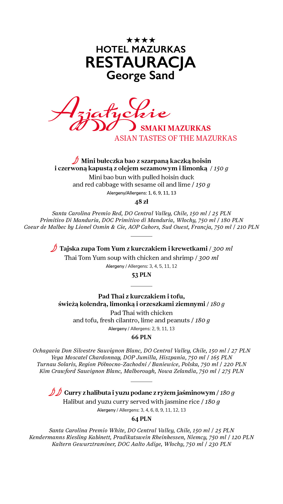Zanurzcie się w bogactwie azjatyckich aromatów i cieszcie się nowymi, pełnymi smaku potrawami. Bułeczka bao z szarpaną kaczką hoisin, tajska zupa Tom Yum, curry z halibuta i yuzu oraz Pad Thai - dania te przeniosą Państwa prosto do serca orientalnej kuchni. Szczegóły tutaj.